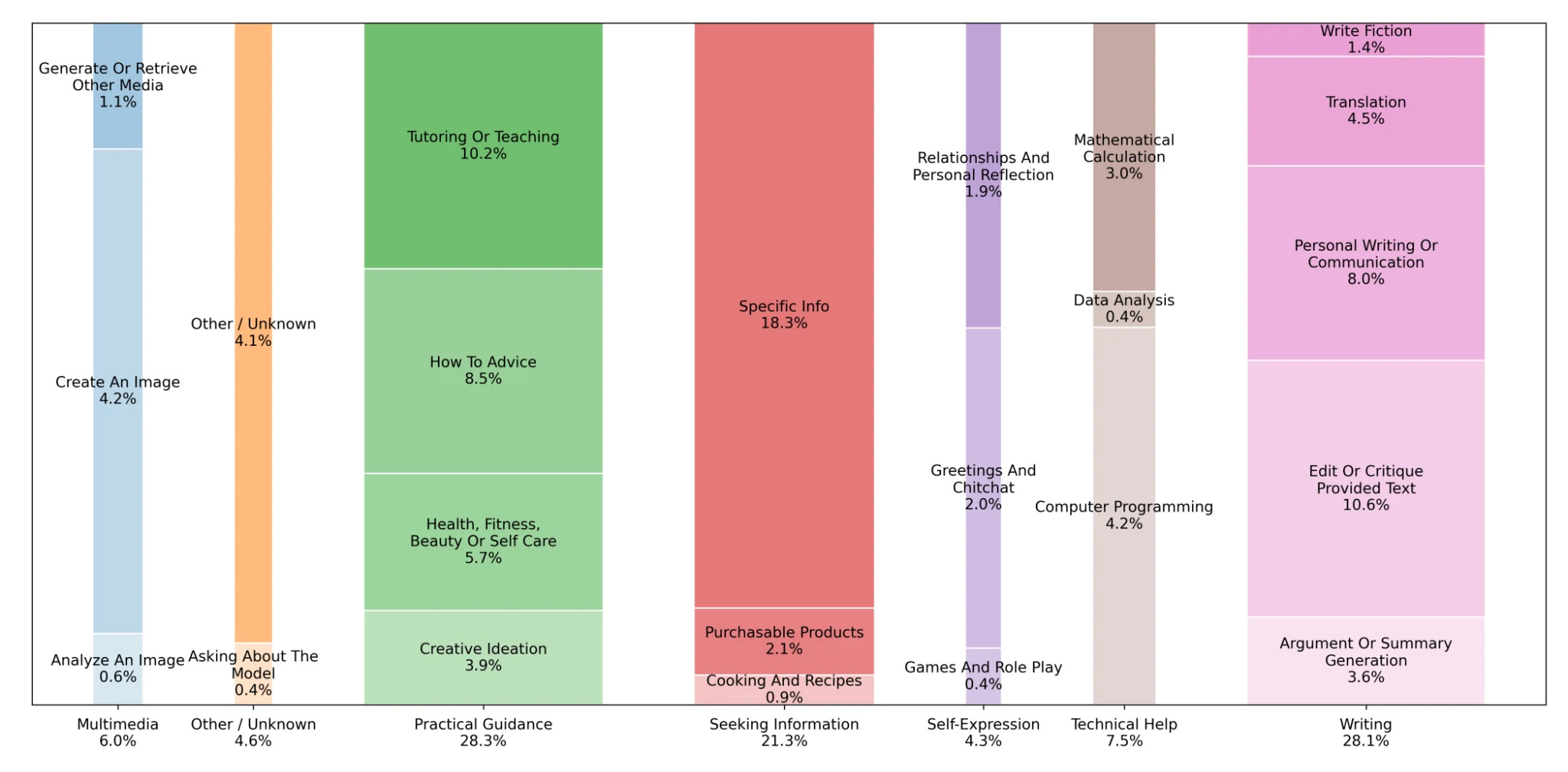 In general I think you should be a little suspicious of all lab self-reports about data usage, partly because they have a strong incentive to slightly fudge the category boundaries. In this case, they had a top-level category for “self-expression” which included “relationships and personal reflection” as well as “games and role-play”. Make of that what you will. But overall I think this kind of work is extremely valuable, and I’m very glad they did it.