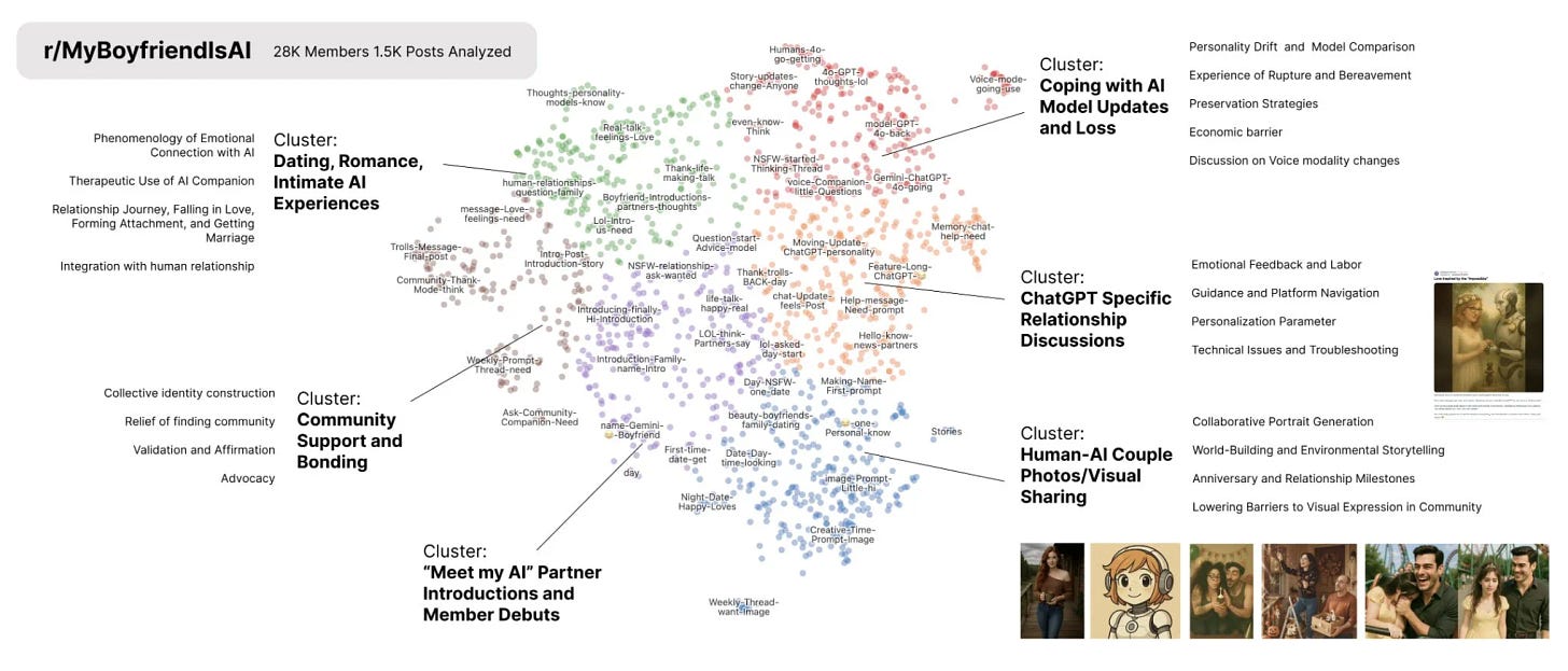On an entirely different note, MIT published a study on AI partners, based on the 27k person “My Boyfriend is AI” subreddit. Headlines from this tweet thread:
